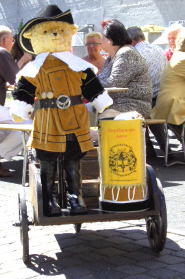 Hugo der Sprechende Bürgerwehr-Bär Mit Trommel, Wagen, Vorderlader und Munitionskiste.