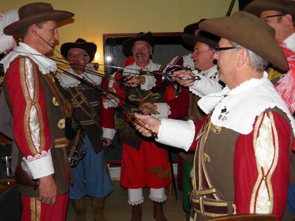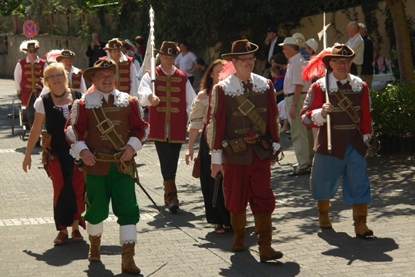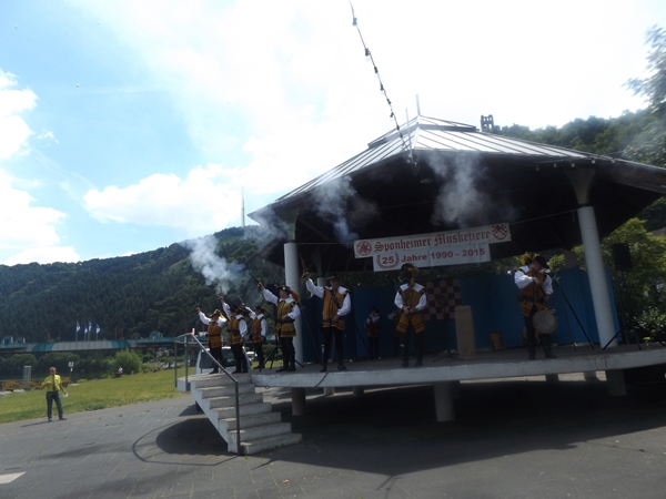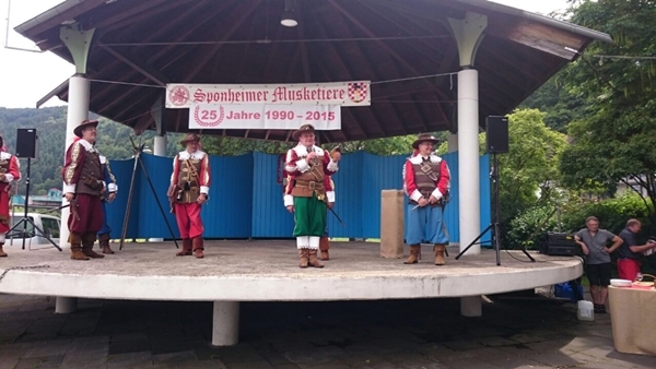 Die Bernkasteler Bürgerwehr begrüßt Ihre Freunde, die Sponheimer Musketiere mit mehreren Salutschüssen zu Ihrem 25 jährigen Jubiläum